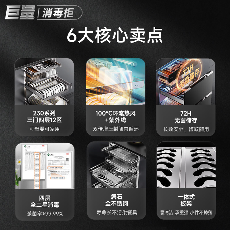 康宝巨量消毒柜嵌入式大容量全二星不锈钢家用奶瓶热风碗柜ER8800