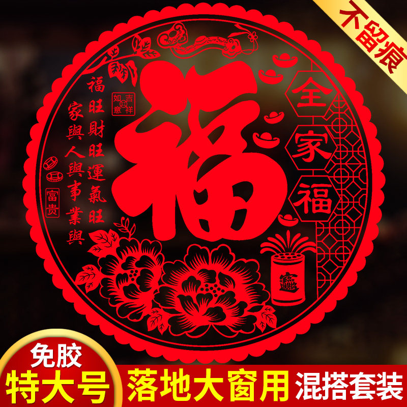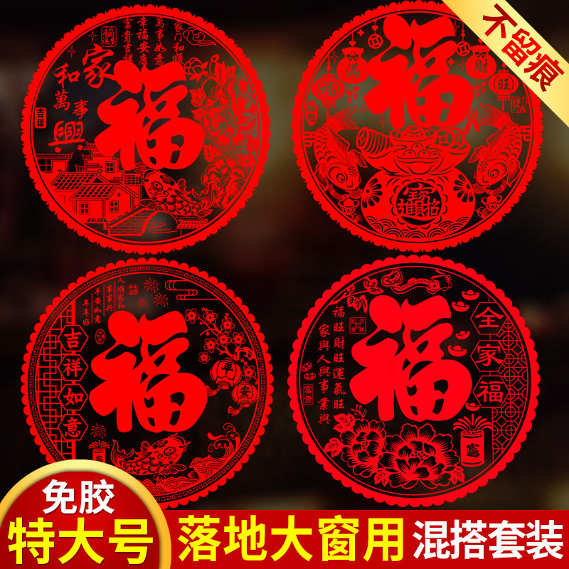 植绒面窗贴特大号福字门贴窗花剪纸静电贴纸玻璃贴过新年乔迁装饰