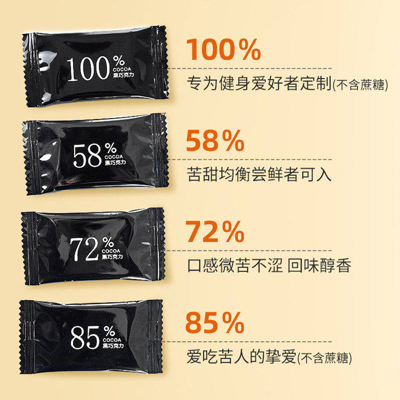 无骄绿农科院黑巧克力每日巧克力可可脂无添蔗糖健身休闲零食代餐