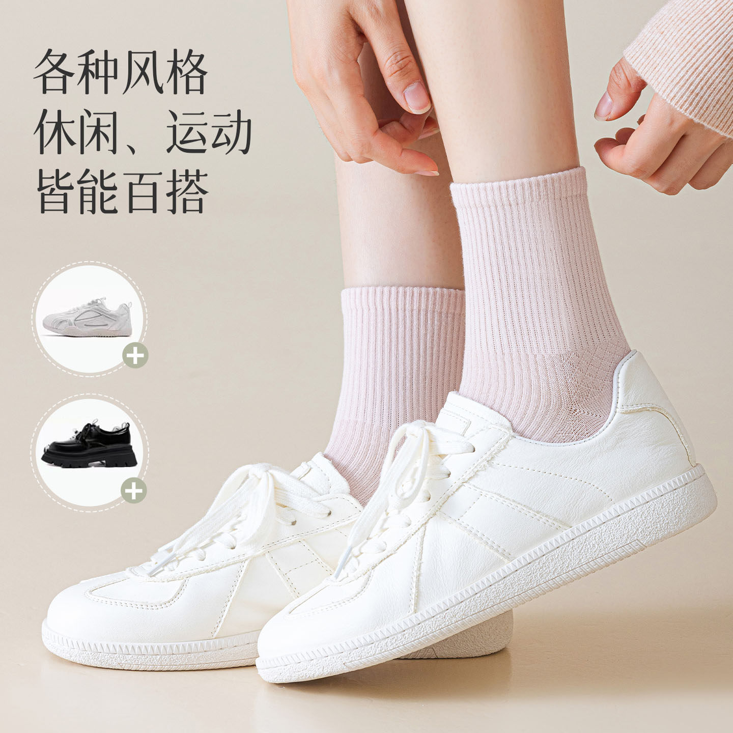 都市丽人袜子女款中筒袜春季纯棉防臭吸汗透气棉袜秋冬运动袜长袜