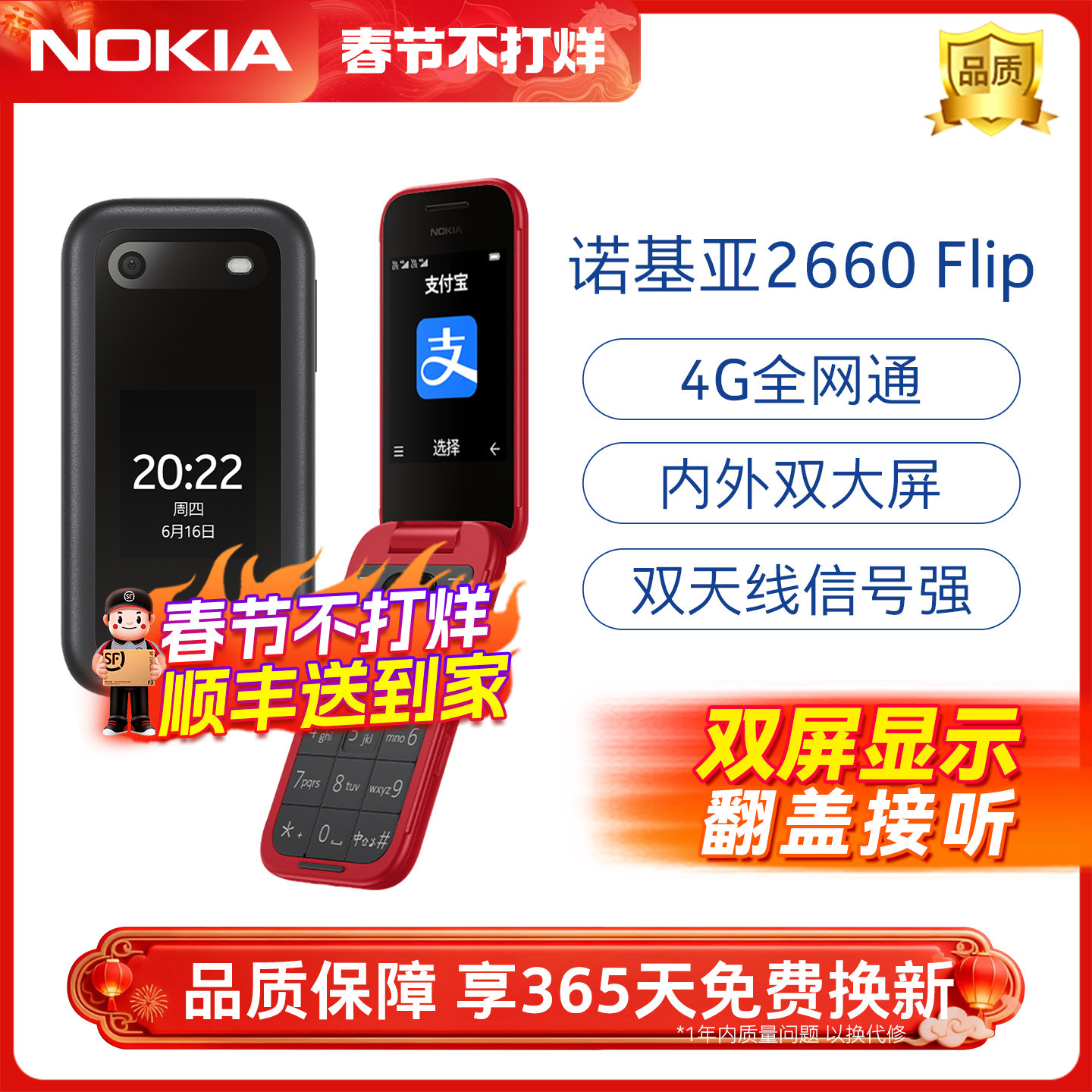 【顺丰速发】诺基亚2660 Flip翻盖老年机正品超长待机老人老年手机大屏大字学生商务老人机2024新款
