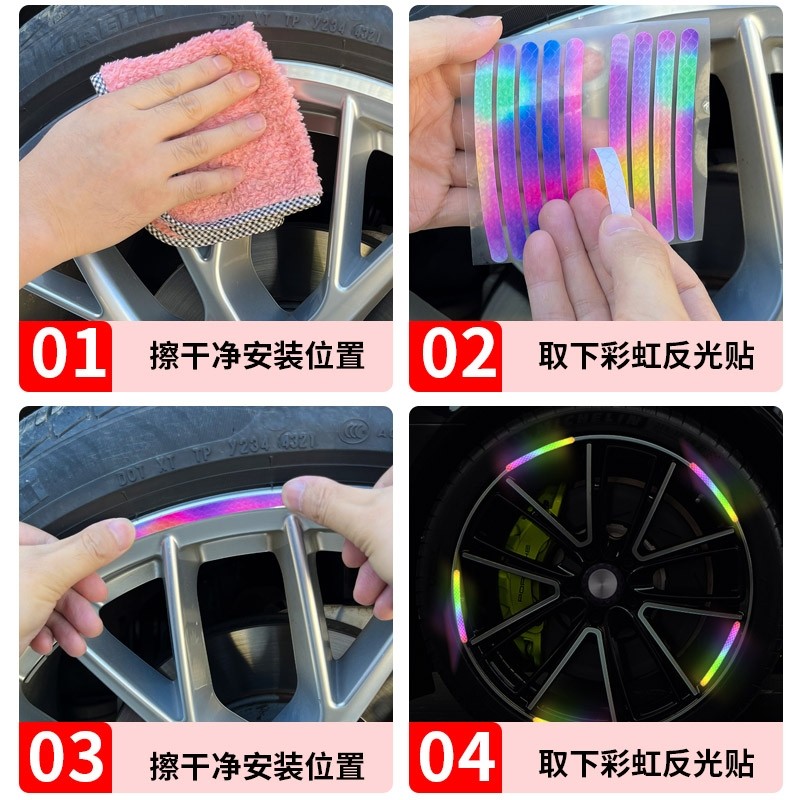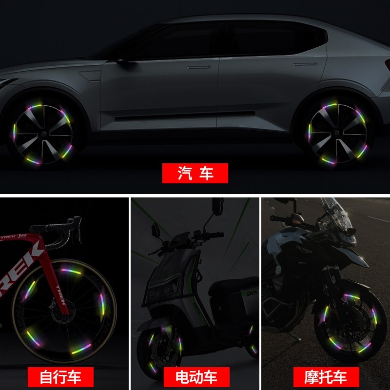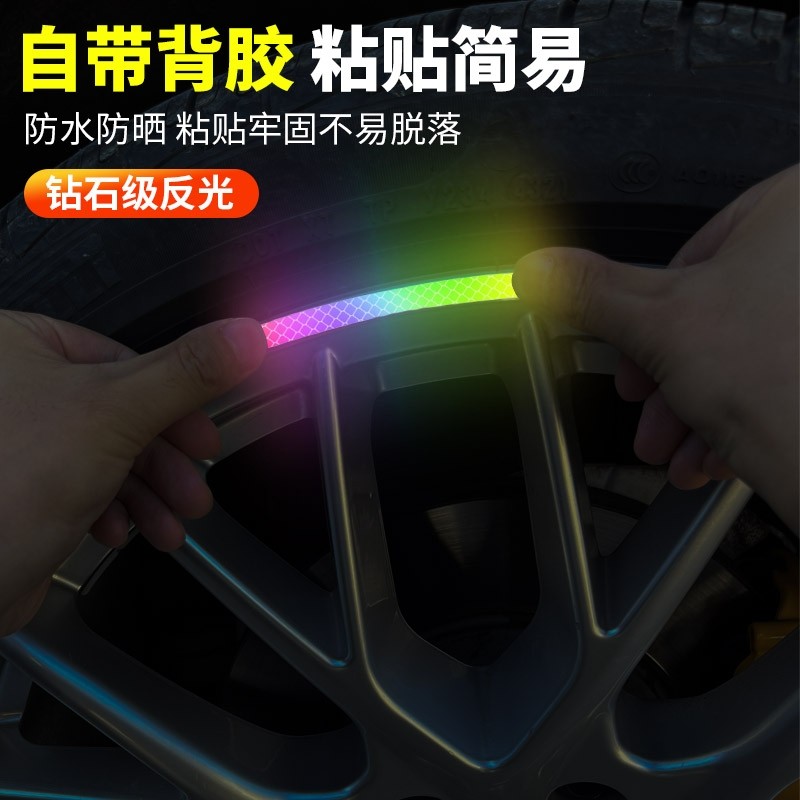 夜晚反光条轮毂贴电动自行车夜骑配件自粘炫彩车轮装饰警示彩虹贴