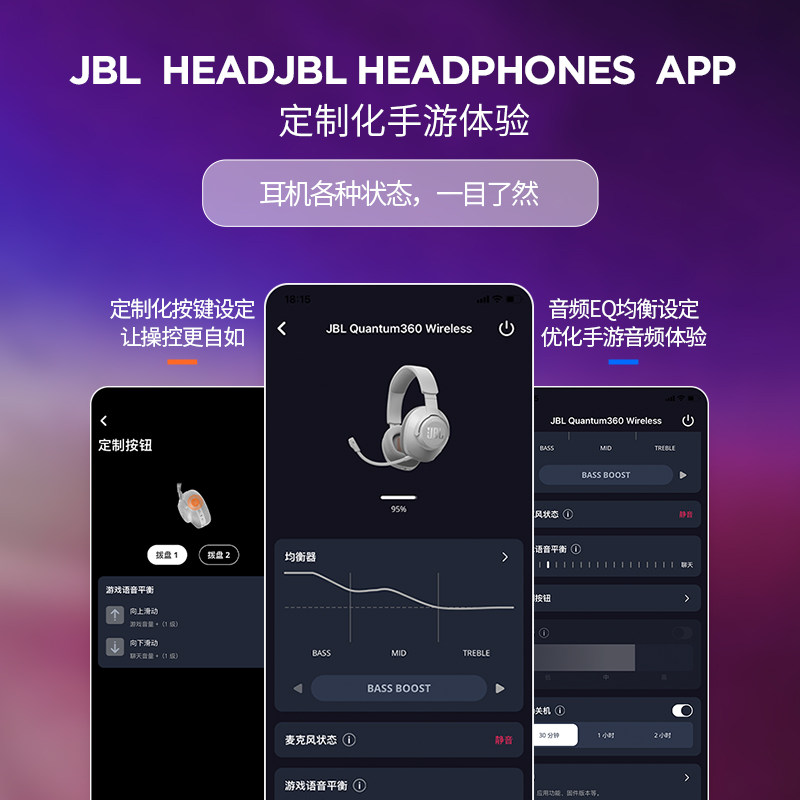 JBL QUANTUM量子风暴Q360游戏电竞耳麦2.4G+蓝牙双模无线耳机