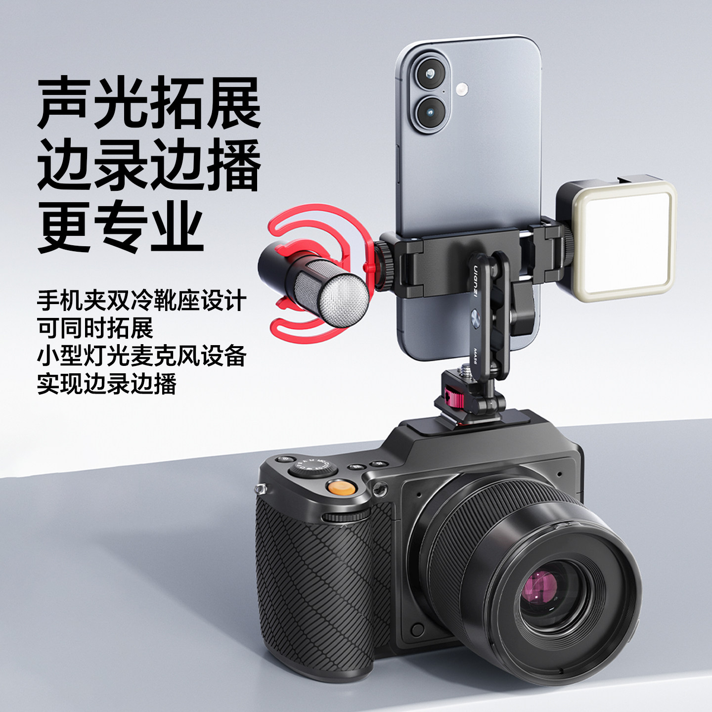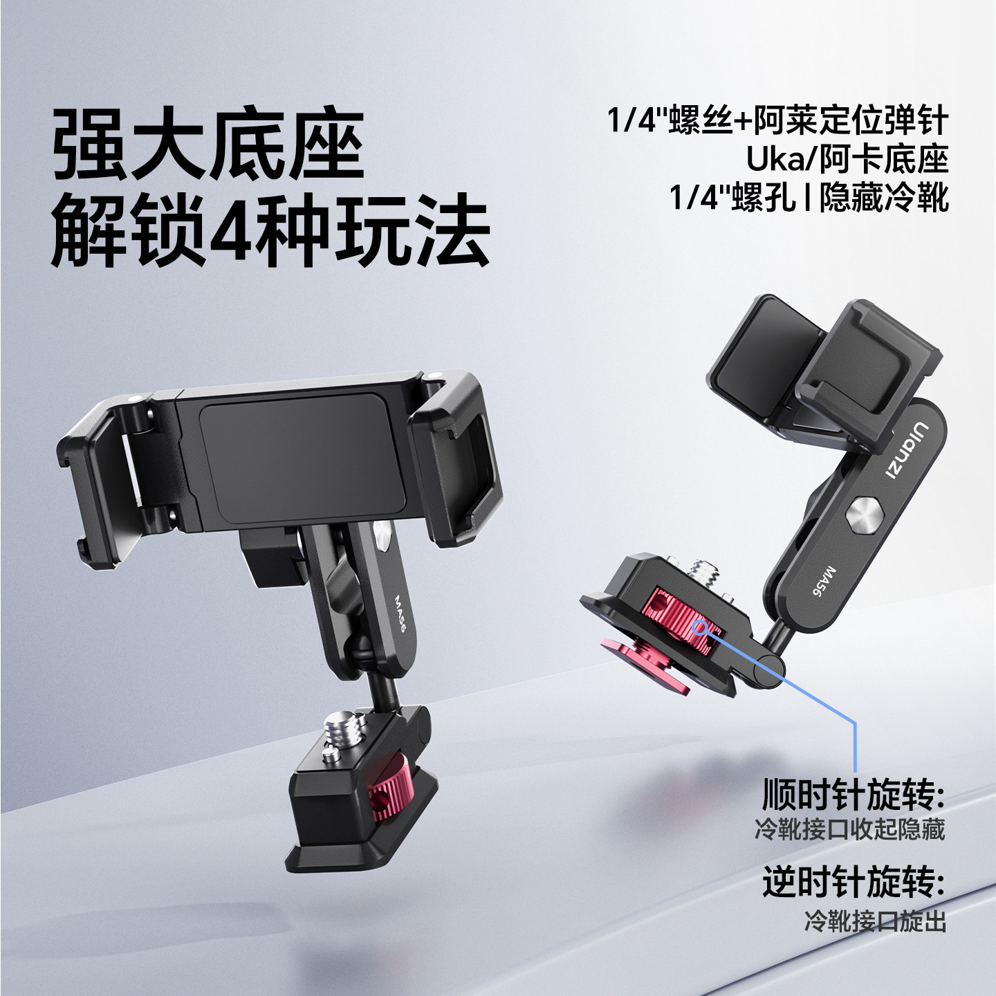 Ulanzi优篮子MA56四合一手机支架夹持款多功能uka冷靴1/4螺丝通用相机手机直播拍摄三脚架铝合金拓展配件