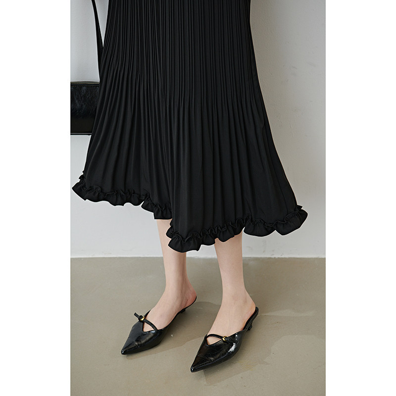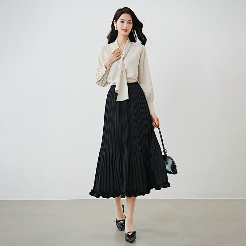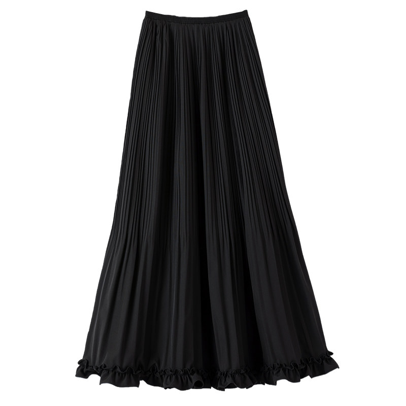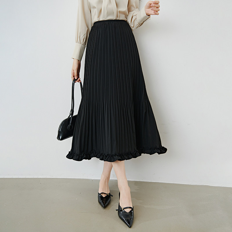 她池松紧腰百褶裙2025秋装新款女装时尚简约中长款A字高腰半身裙
