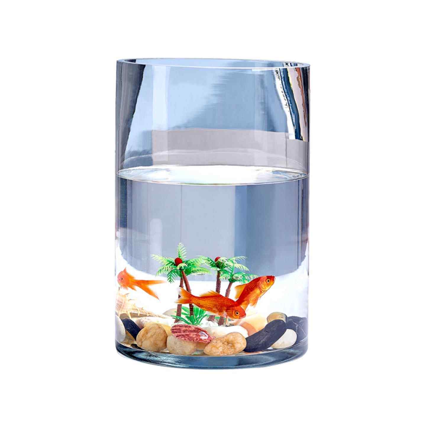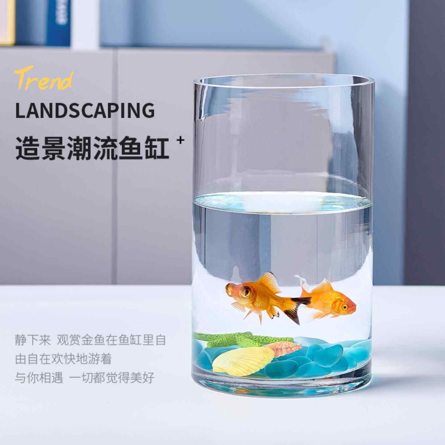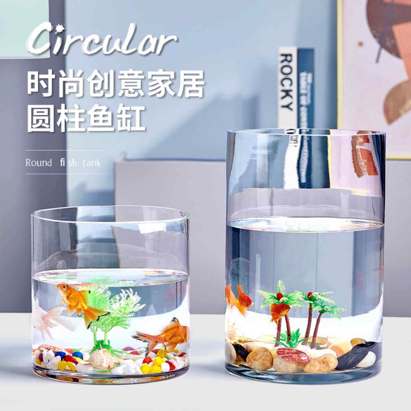 创意客厅金鱼缸玻璃水族箱小型生态圆形圆柱大号乌龟缸造景培装饰