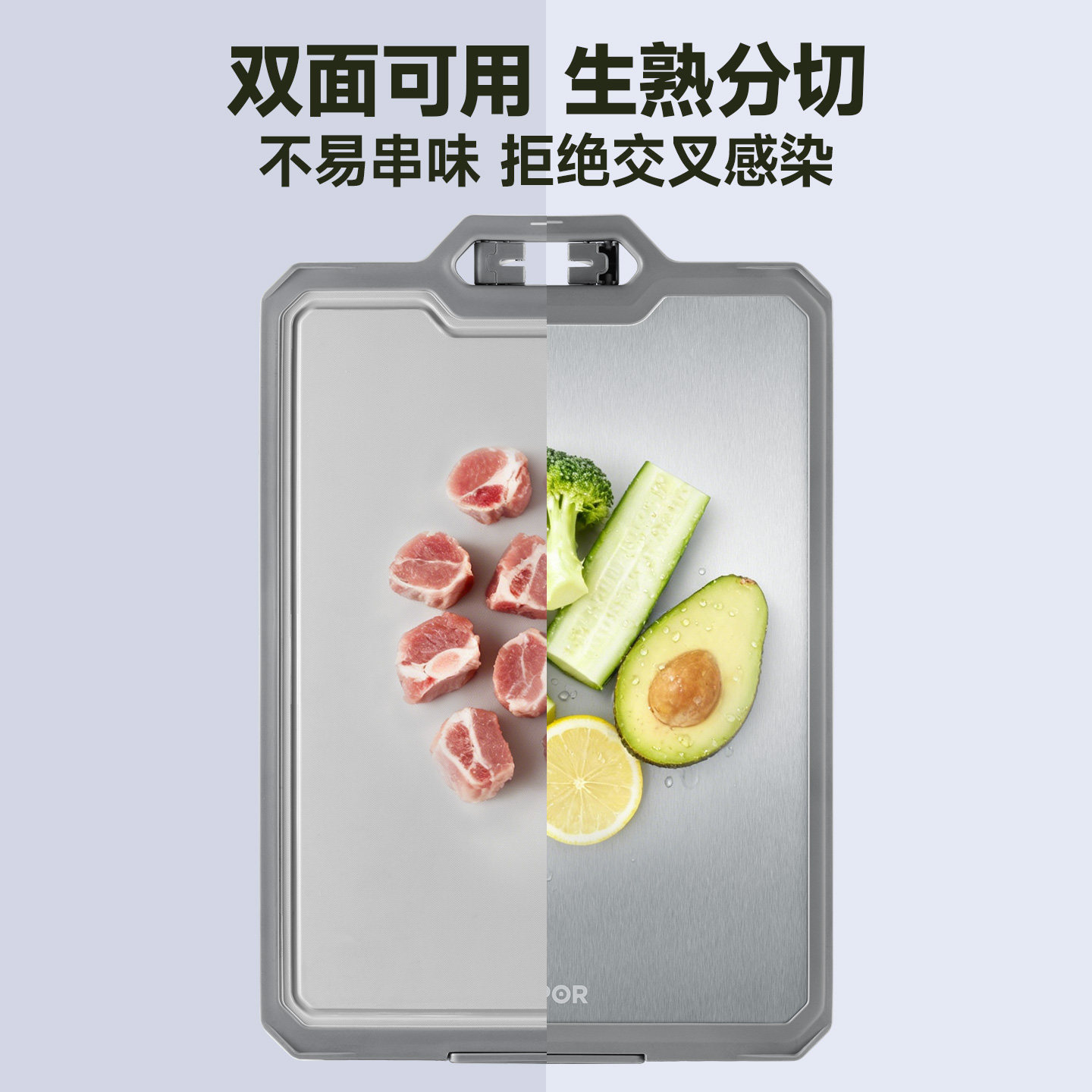 苏泊尔切菜板抗菌防霉家用不锈钢案板水果砧板双用面板刀粘小占板