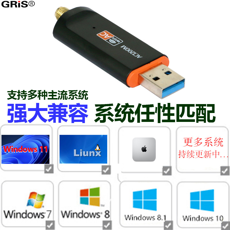 GRIS GE-LW09-4502 RTL8812BU无线网卡USB3.0双频kali千兆Win11免驱动5.8G台式机笔记本大功率电脑WIFI接收器