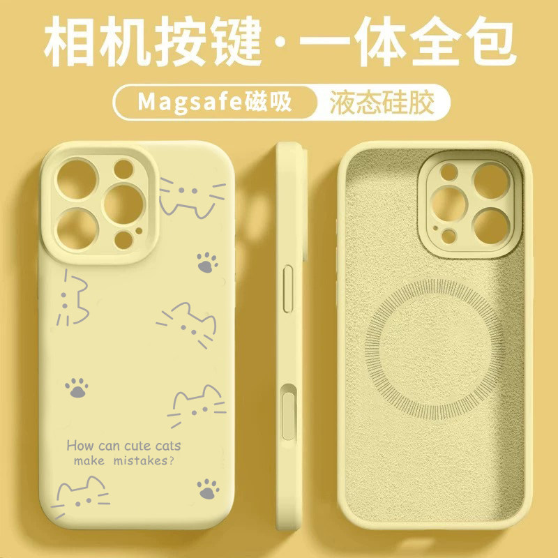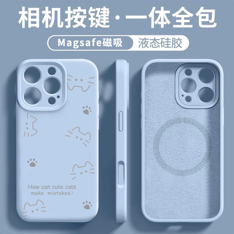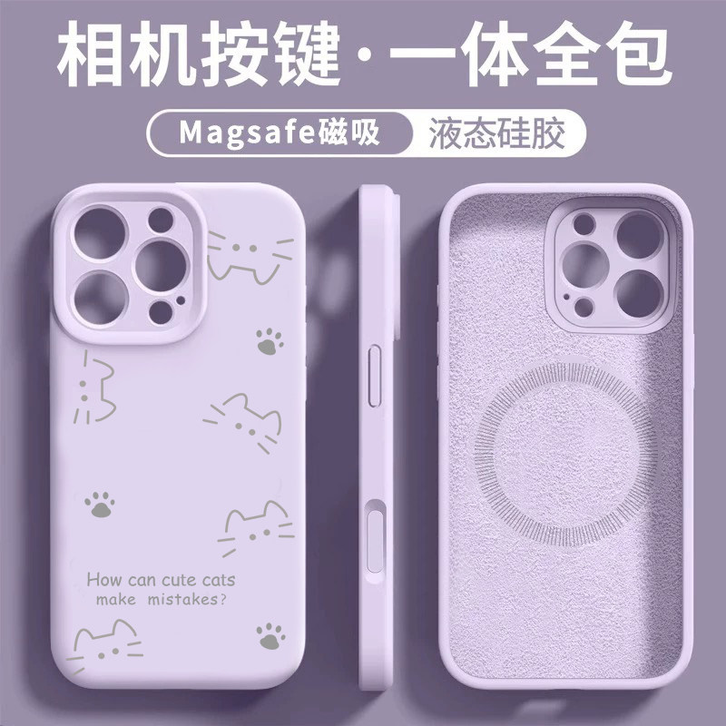 Magsafe磁吸适用苹果16Promax手机壳iPhone15Promax液态硅胶14Pro一体按键13线条猫咪12可爱卡通防摔保护套