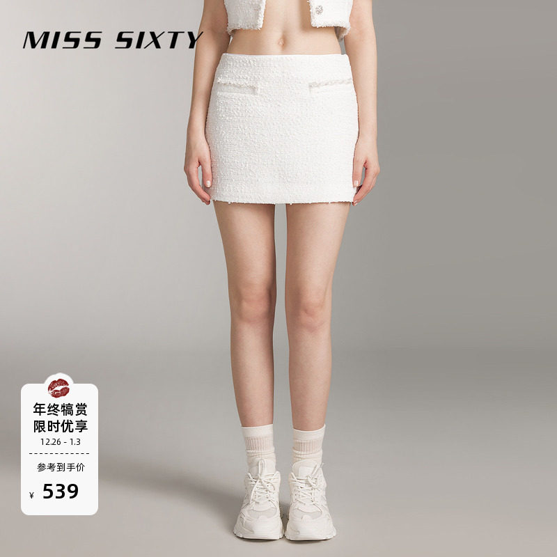 Miss Sixty白色半身裙气质法式小香风钉珠低腰短裙百搭裙子