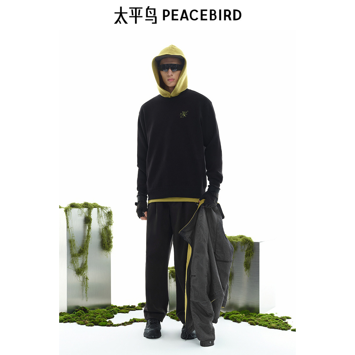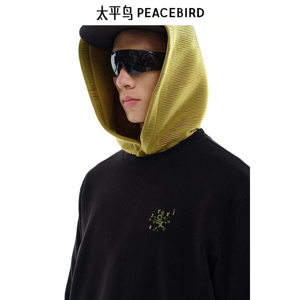太平鸟男装 休闲宽松卫衣重磅撞色刺绣男士上衣潮流潮牌圆领外套