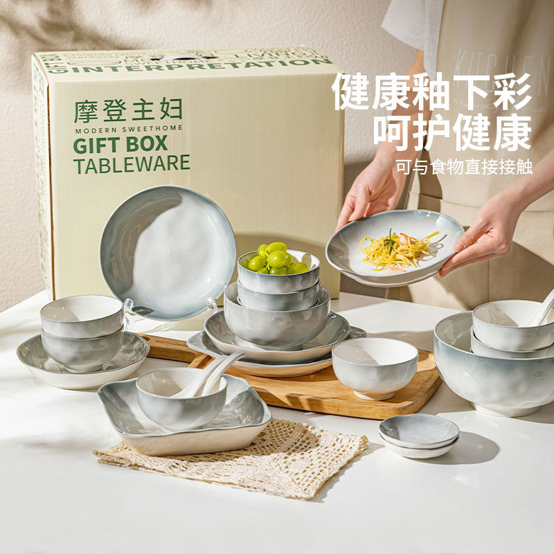 摩登主妇餐具2025新款高颜值碗具碗筷碟子釉下彩乔迁碗盘套装家用