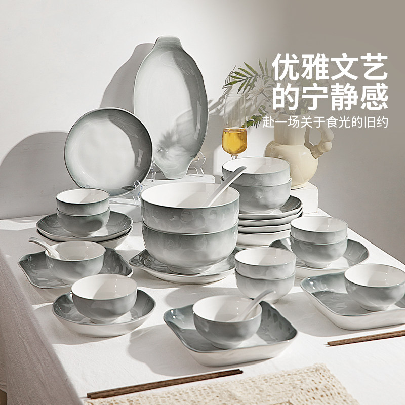 高级感碗碟套装家用2025新款简约碗盘乔迁碗筷陶瓷釉下彩餐具盘子