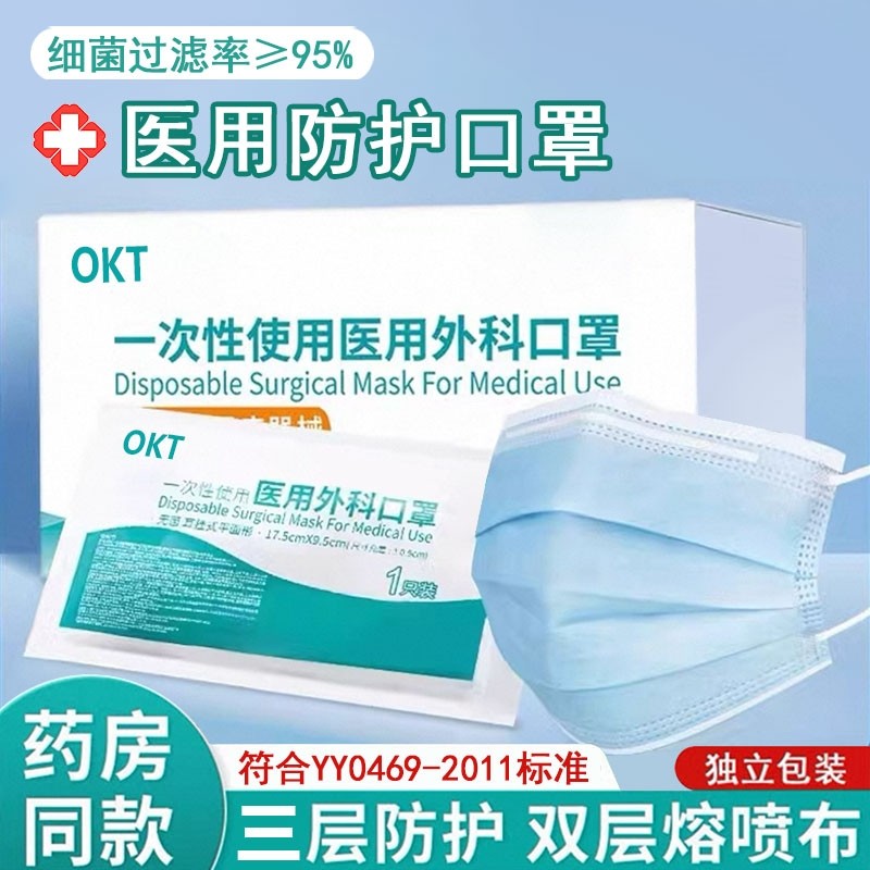 医用外科口罩一次性医疗三层官方正品旗舰店女高颜值透气单独包装
