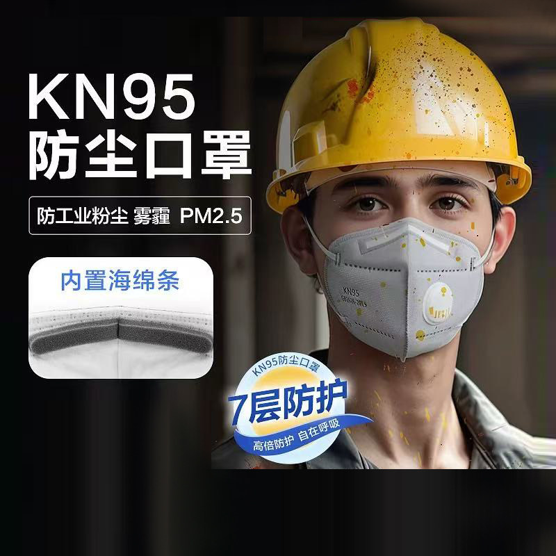 KN95口罩防尘透气易呼吸工业防护粉尘雾霾打磨活性炭带阀电焊口罩