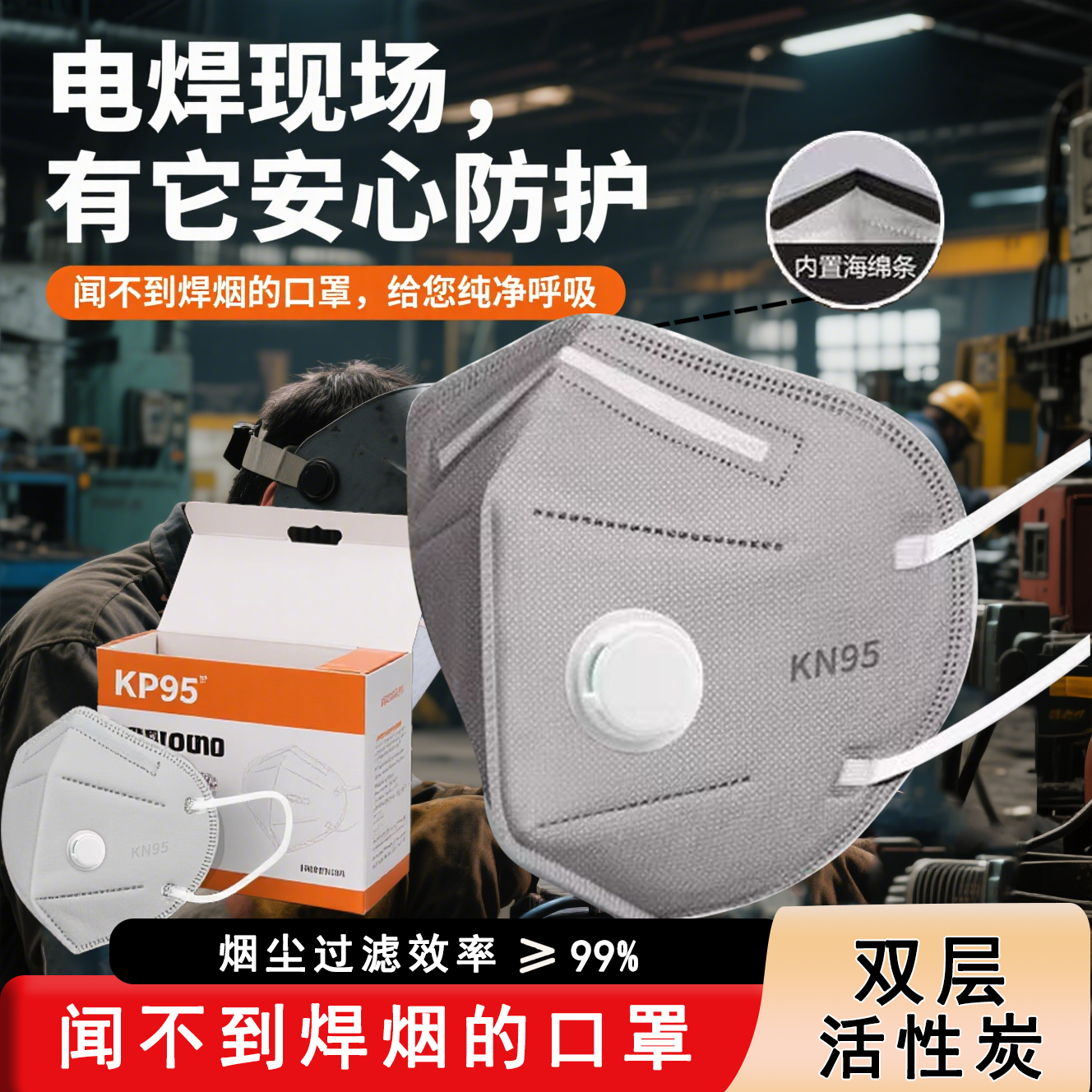 活性炭kn95防尘口罩防工业重度粉尘肺kp95防甲醛电焊喷漆防护正品