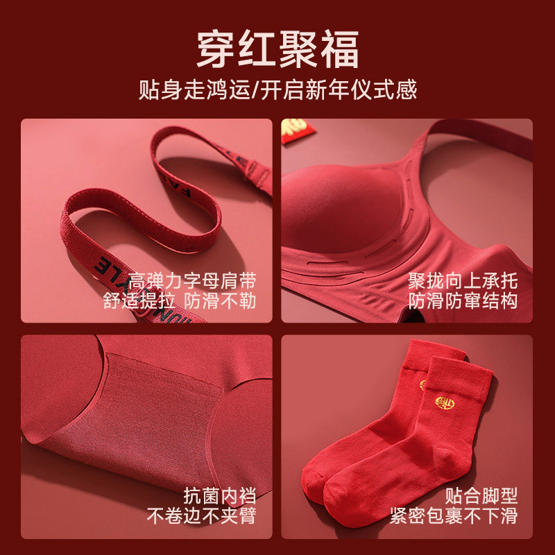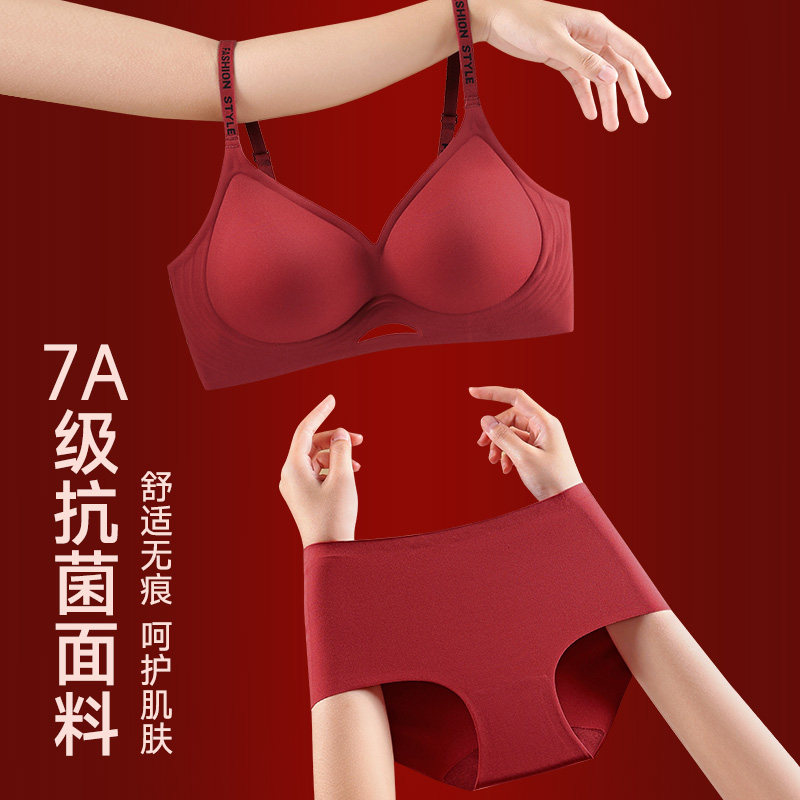 本命年红色内衣内裤女文胸套装礼盒新娘结婚小胸聚拢马年新年礼物