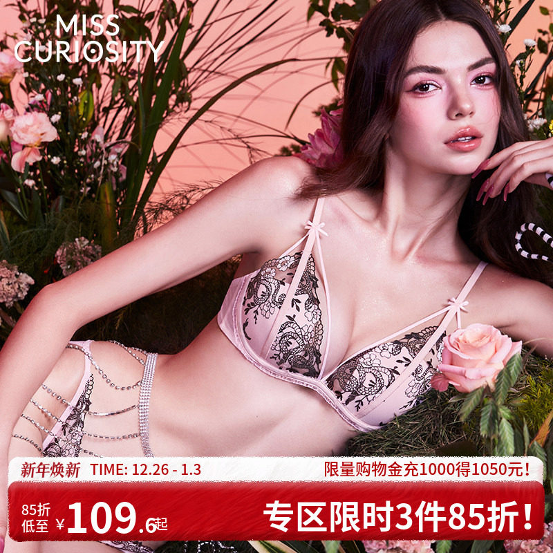 好奇蜜斯小胸性感内衣女防下垂大胸显小薄纯欲文胸罩套装法式刺绣