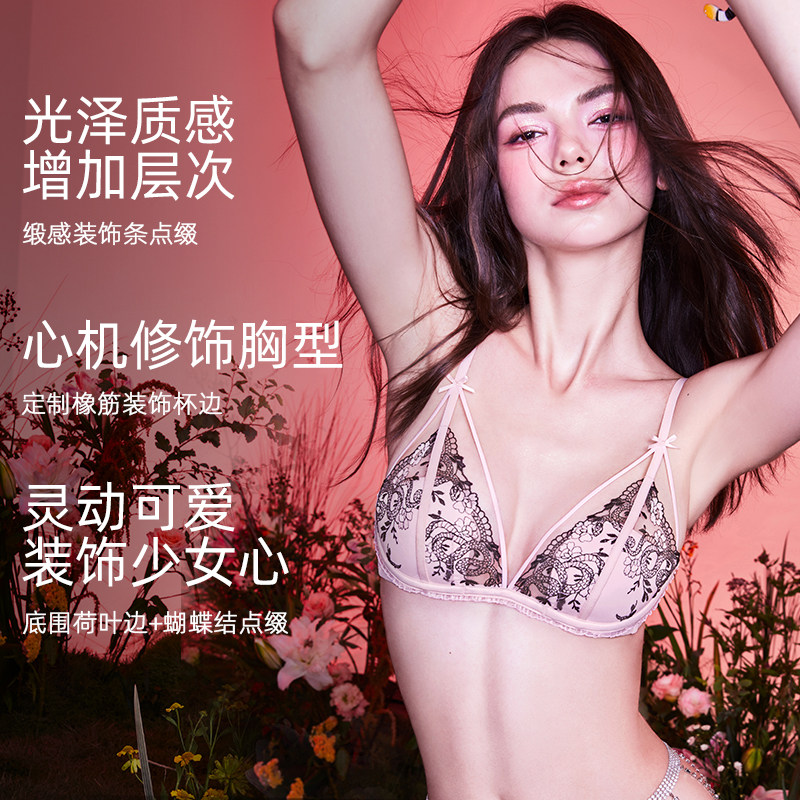 安莉芳玫瑰兔耳朵内衣女性感超薄透气软支撑大胸显小纸片人文胸