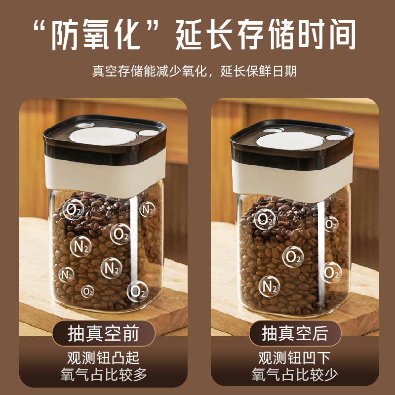 咖啡豆密封罐玻璃储存罐食品级真空保存罐茶叶咖啡粉储物瓶子防潮