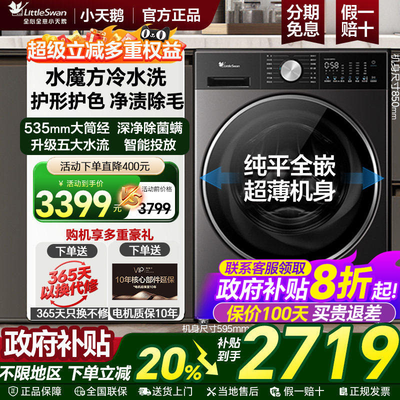 [纯平全嵌]小天鹅小乌梅3.0家用10kg全自动滚筒洗衣机水魔方变频