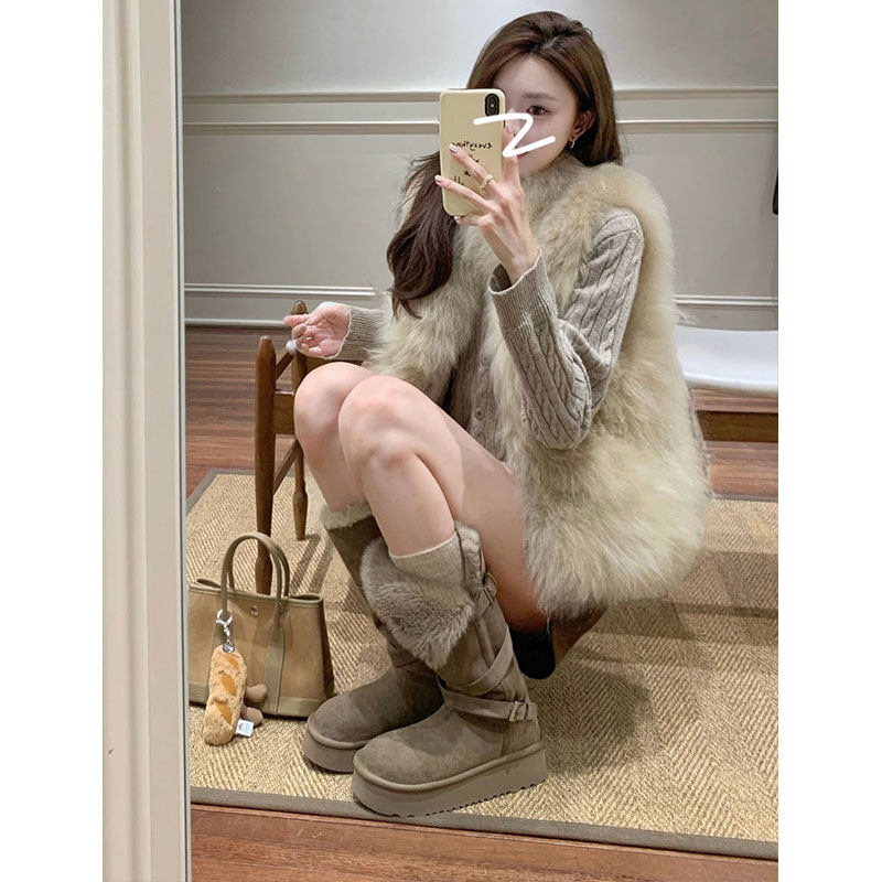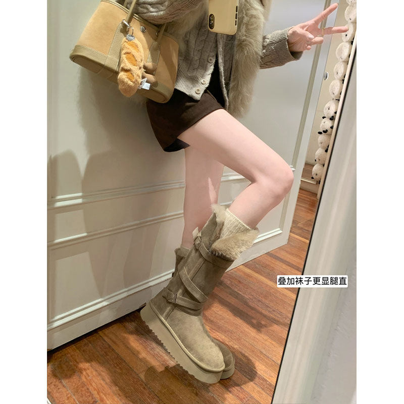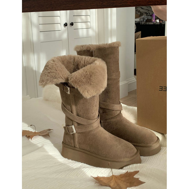 Chio2nd南风 雪地靴棉鞋2024新款冬季女士厚底加绒皮毛一体鞋子