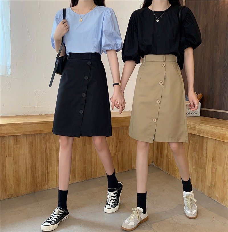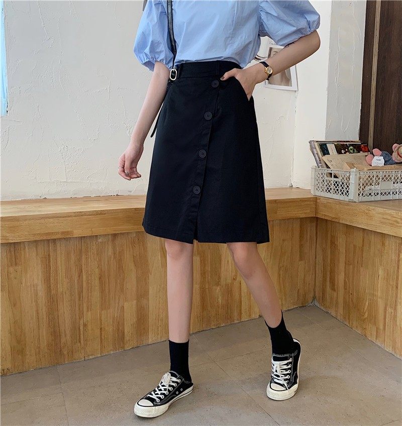 夏季韩版中长款裙子大码高腰不规则a字裙工装裙学院风修身半身裙