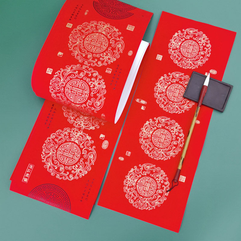 珠江对联纸空白手写春联纸2026年新款特厚不褪色万年红福字斗方大门对子乔迁之喜婚庆组合套装手礼铜板纸对联