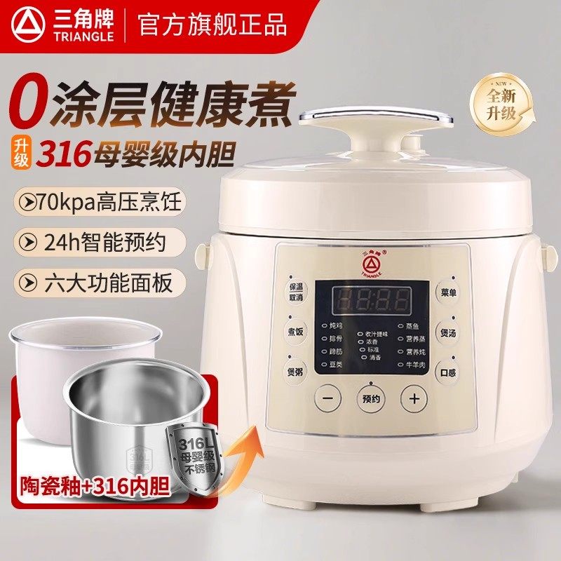 三角牌316不锈钢电压力锅陶瓷釉家用2-3人小型电饭煲迷你内胆双胆