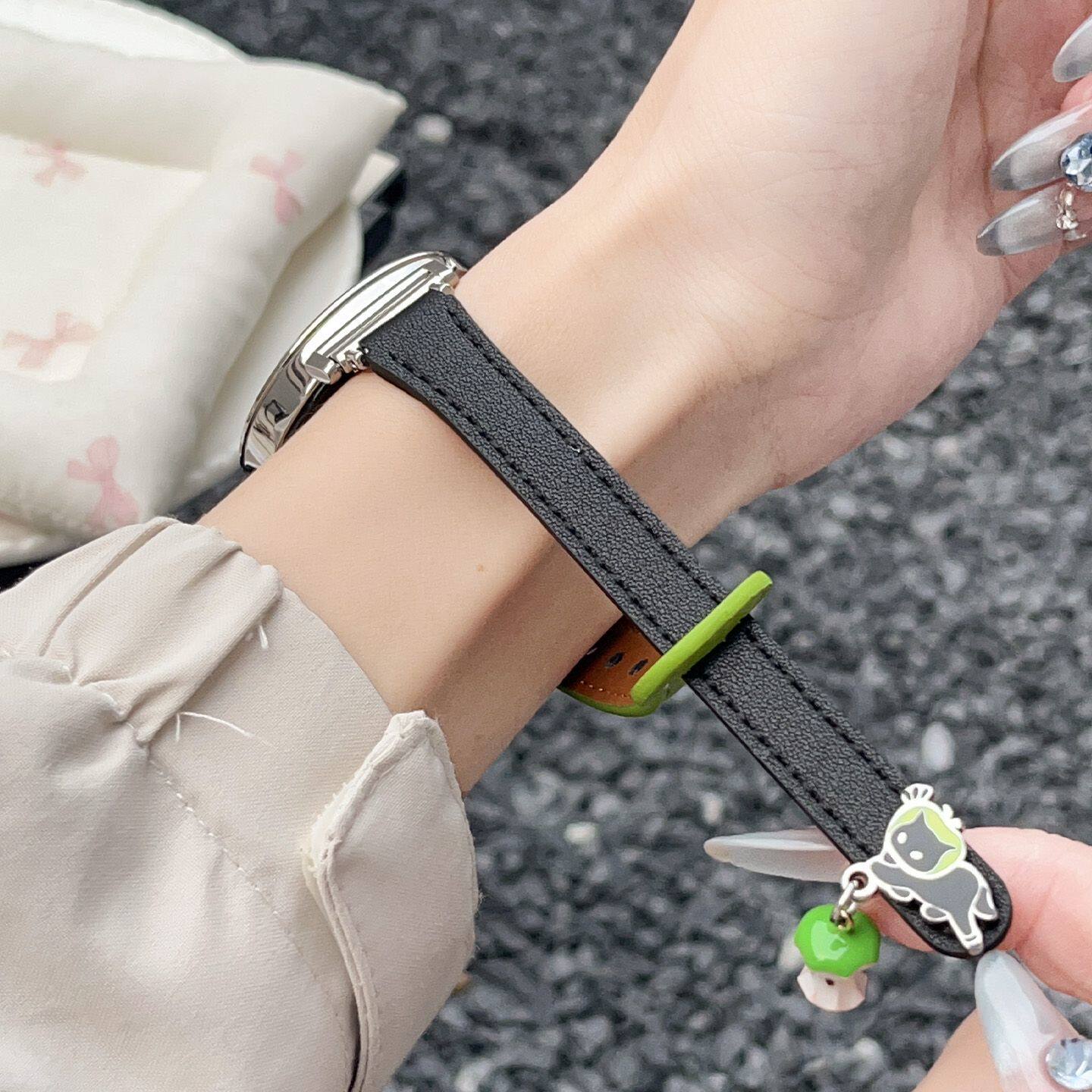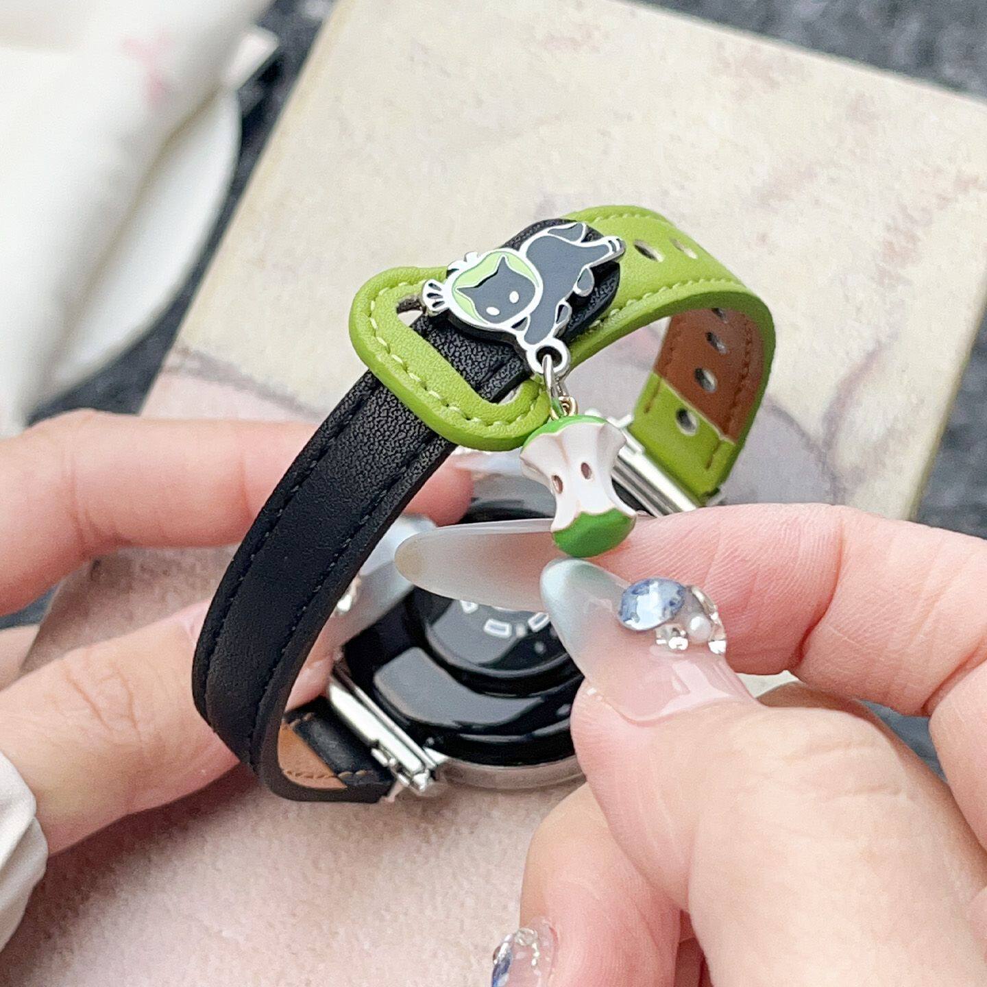 适用于华为手表gt6表带5pro皮质青苹果猫watch5/4创意腕带3/2撞色女款41mm小众高级感智能运动配件
