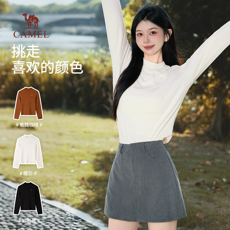 骆驼女装长袖T恤2025新款秋冬半高领双面德绒保暖打底衫内搭上衣