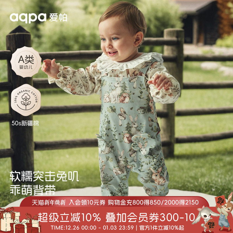 [绿野邦尼]aqpa爱帕婴儿连体衣吊带哈衣纯棉春新款宝宝背带裤洋气