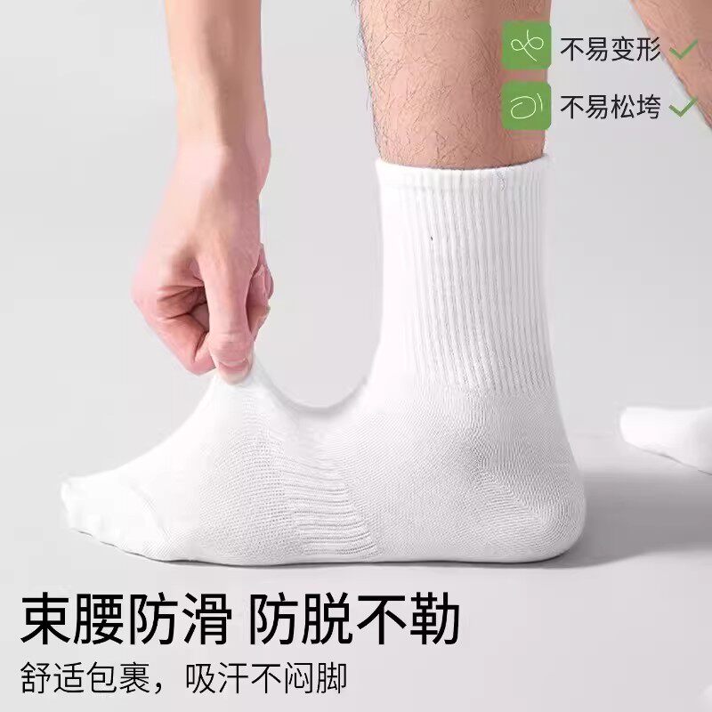 袜子纯棉吸汗防臭秋冬白色中筒袜男运动透气长筒袜春秋抗起球短袜