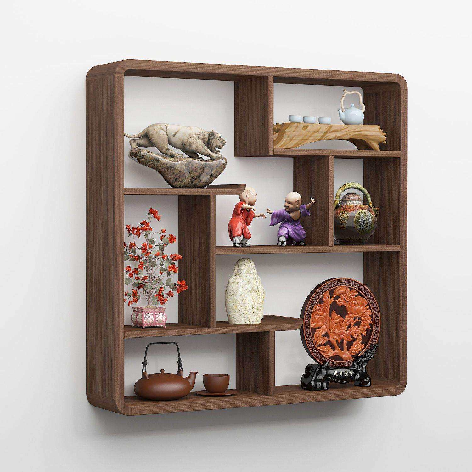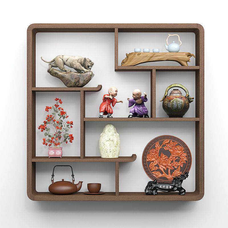 博古架实木中式壁挂式上墙茶壶展示架置物架书房客厅多宝阁古董架