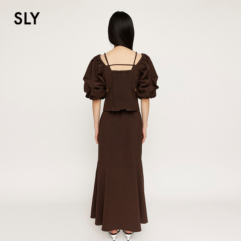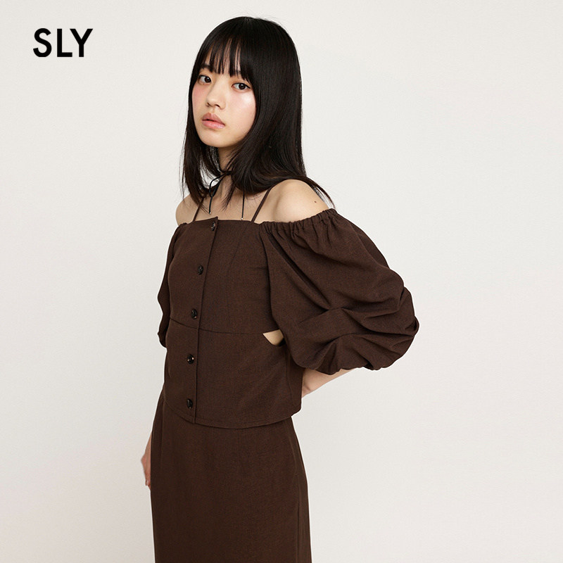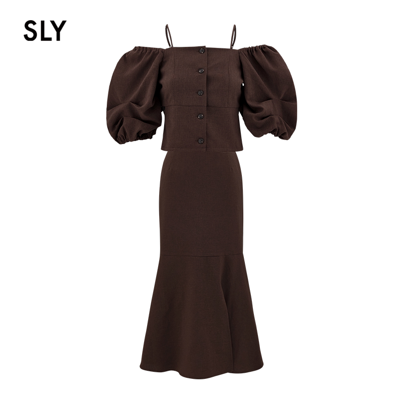 分体式套装 两侧露腰细节 少女感泡泡袖型