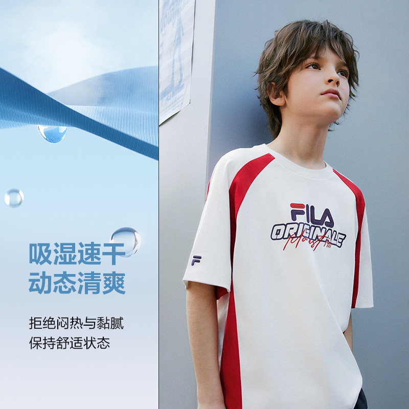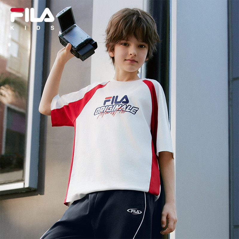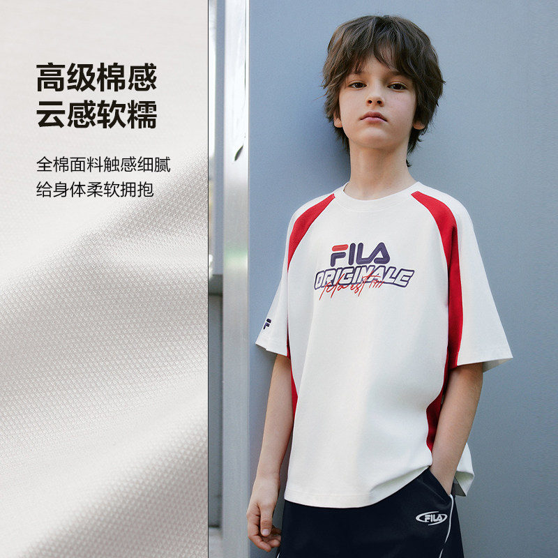 FILA KIDS斐乐童装男大童纯棉宽松上衣2026夏季新款儿童短袖T恤