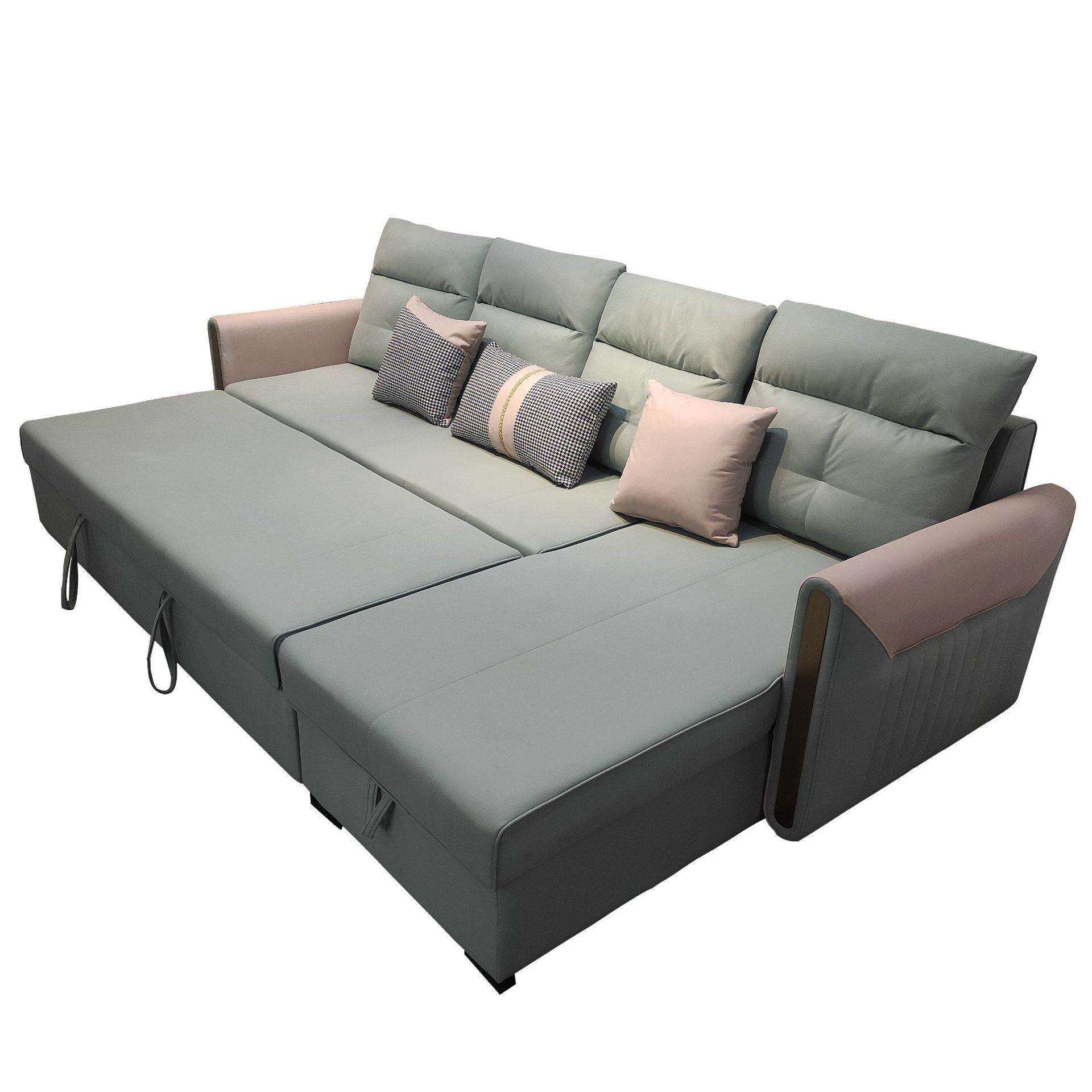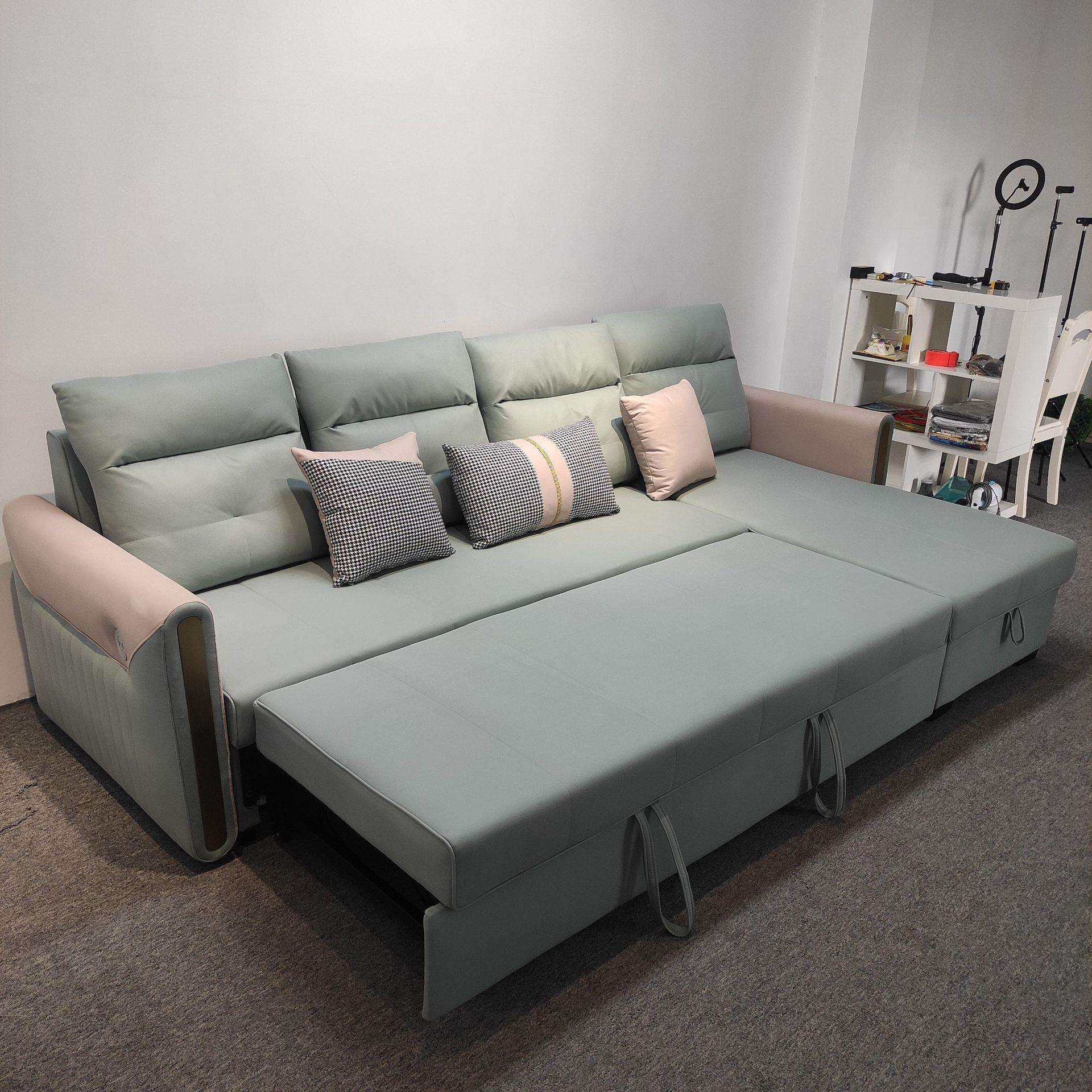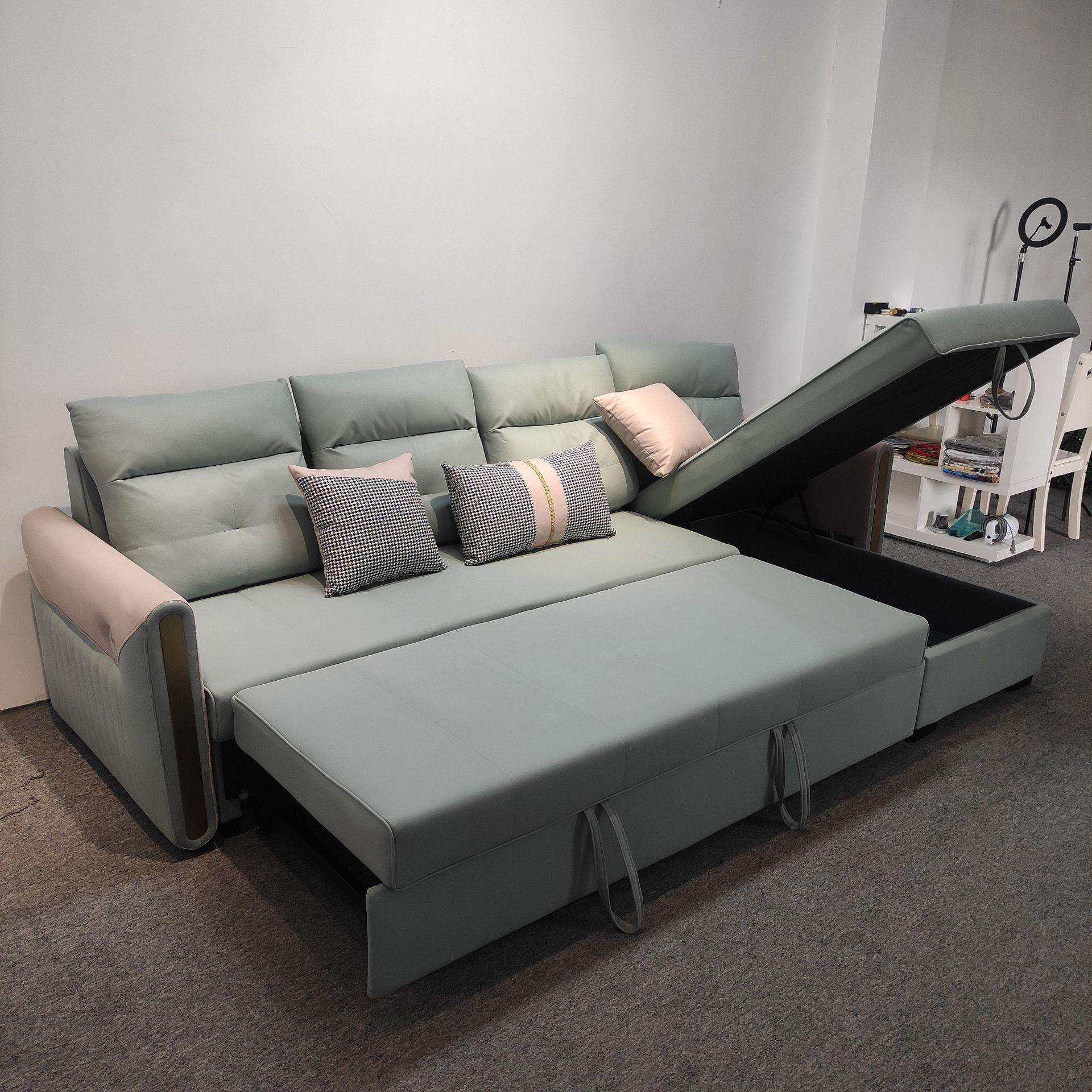 可折叠多功能两用客厅贵妃带转角小户型双人储物布艺沙发床