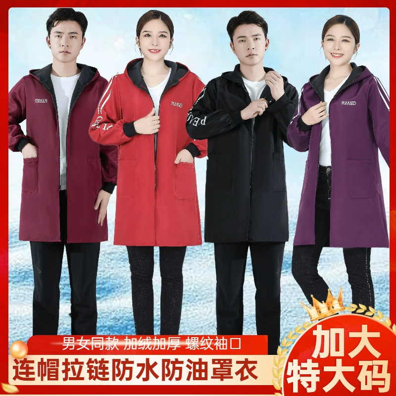 加绒罩衣成人加厚时尚防水厨房冬季围裙长袖大人特大码男士工作服