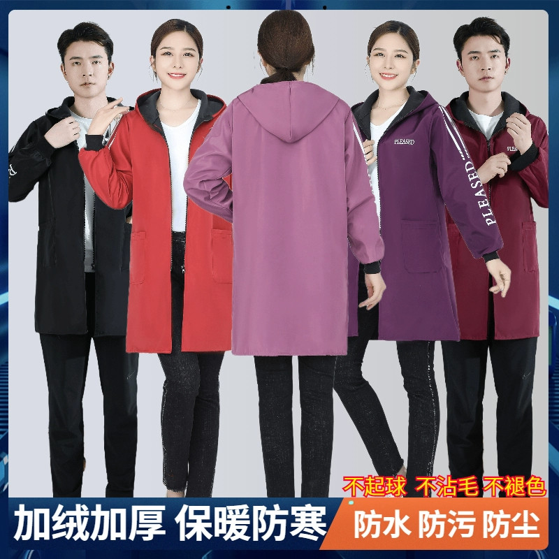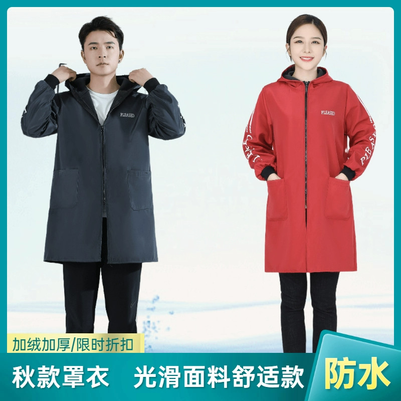 冬季加绒罩衣大人加厚长袖围裙防水韩版女时尚外套家用工作服定制