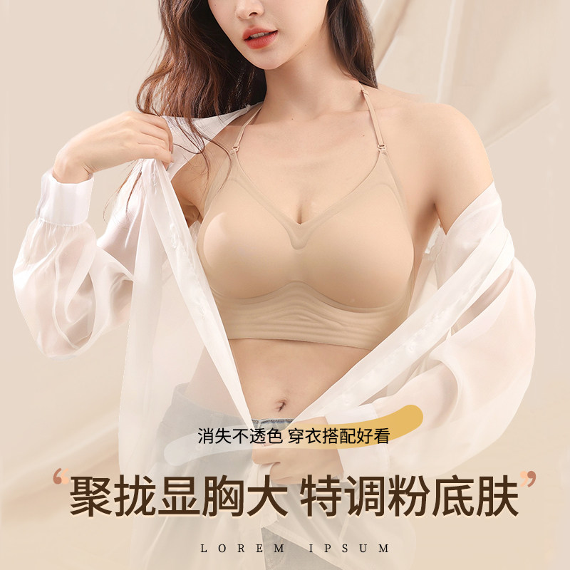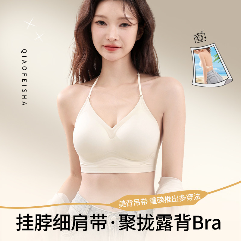 挂脖吊带美背细肩带内衣女小胸聚拢胸罩隐形无痕粉底液一体式文胸