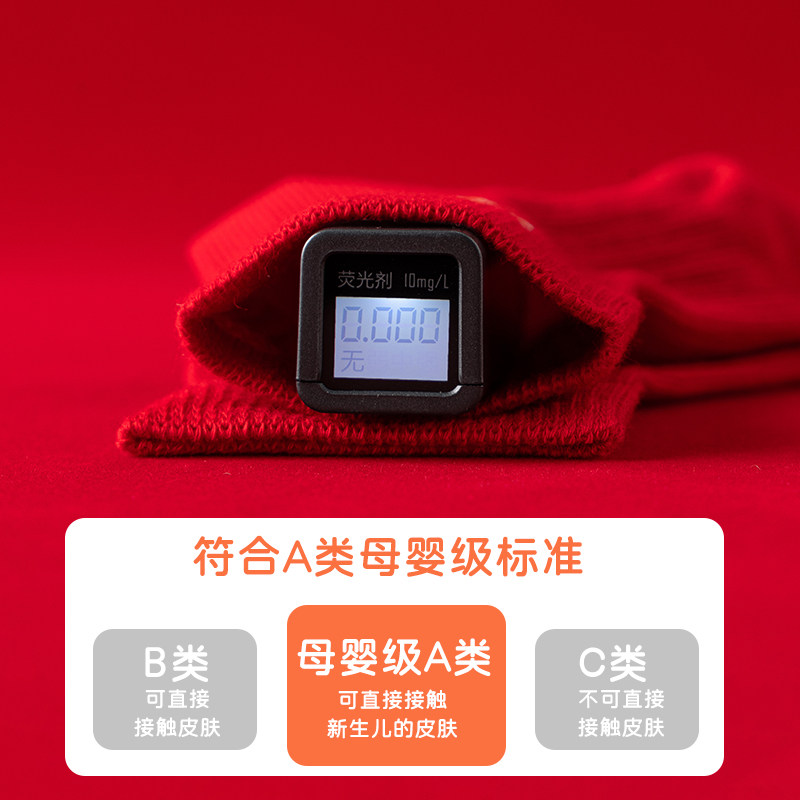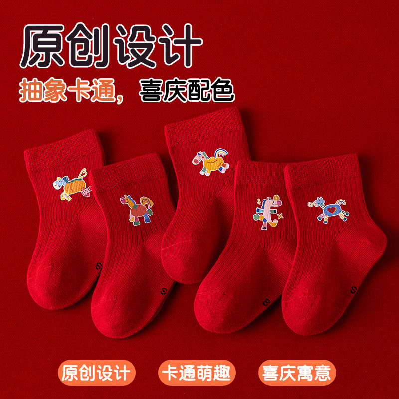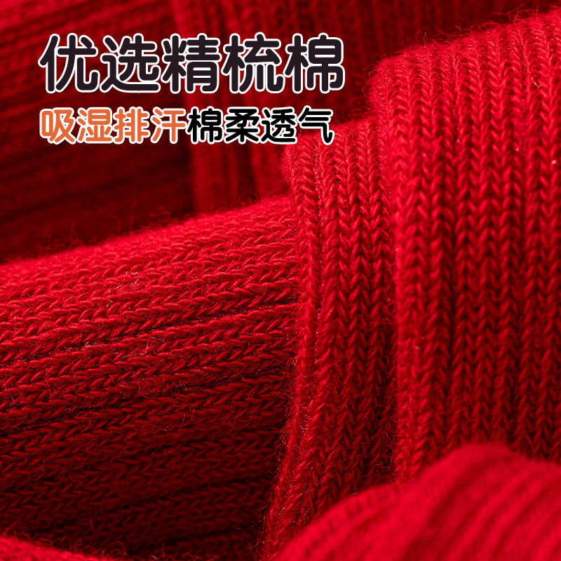新生儿婴儿袜子新年袜a类纯棉中筒春秋季大红色过年周岁喜庆生肖