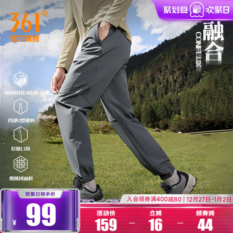 361运动裤男2025秋冬雨屏防水抓绒U型裤休闲长裤户外登山徒步裤子