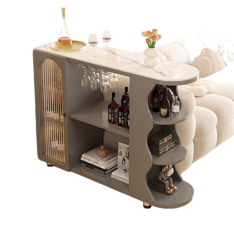 奶油风吧台桌子家用酒柜实木隔断柜客厅岩板餐边柜厨房可移动橱柜