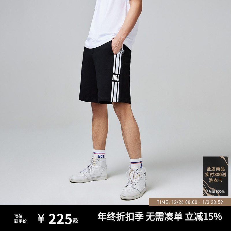 杰克琼斯NBA联名款男装短裤子抽绳腰双侧条纹织带秋季篮球下装