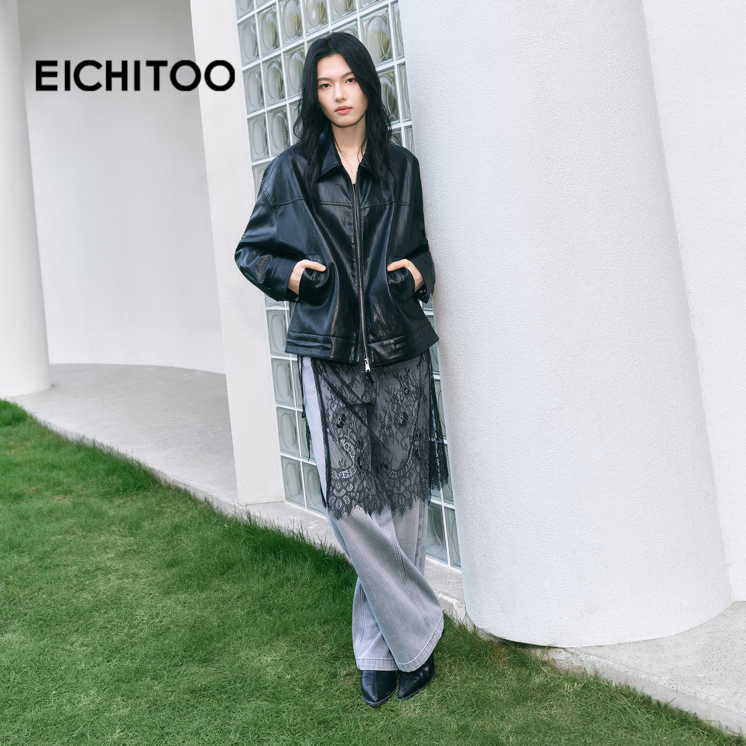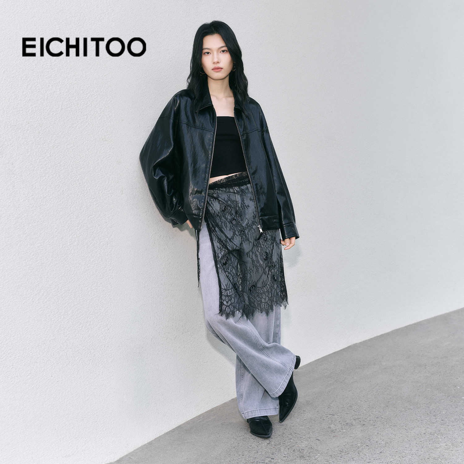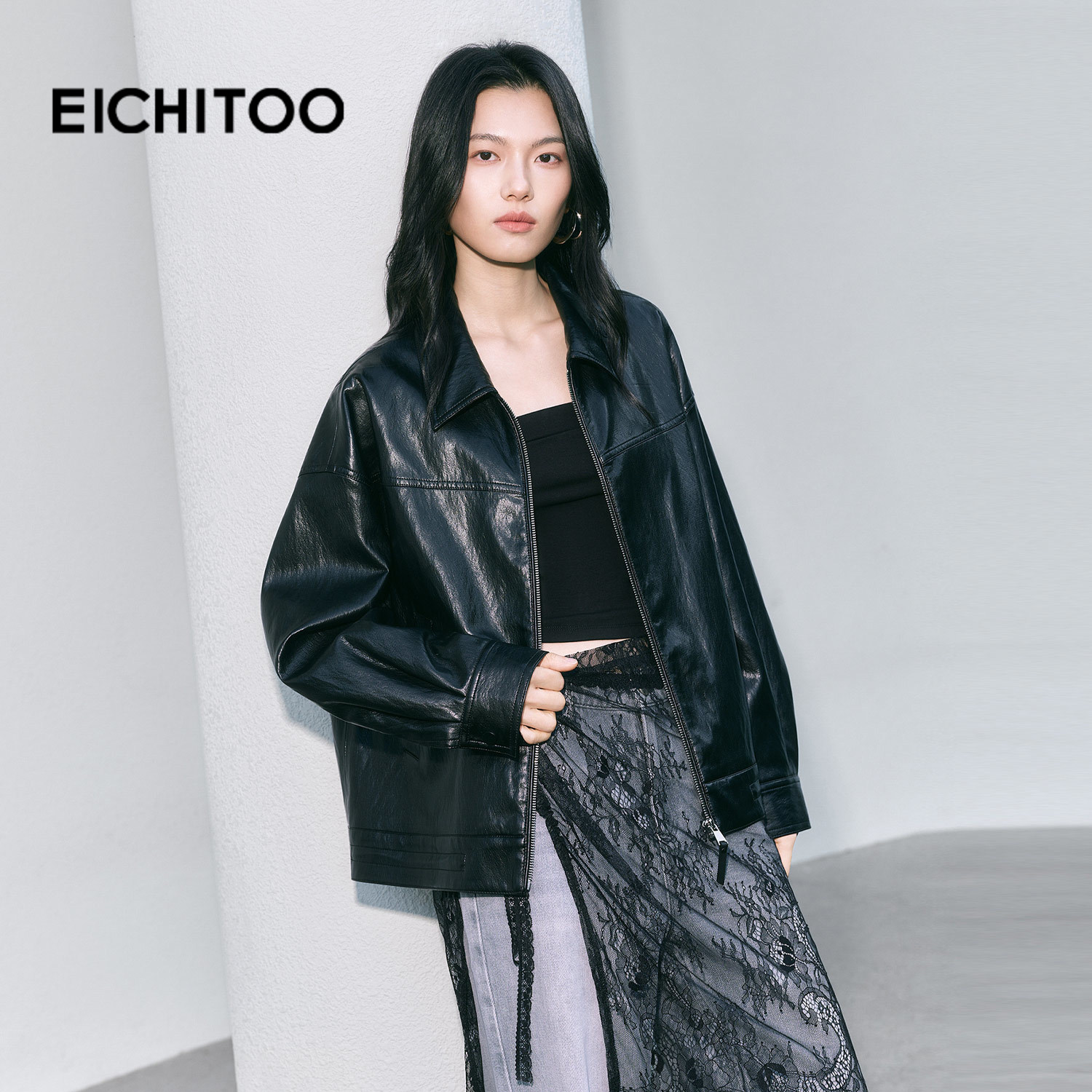 爱居兔气质翻领pu皮衣短外套女2026年春季新款拉链机车风夹克上衣