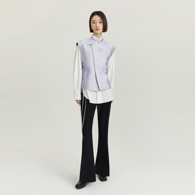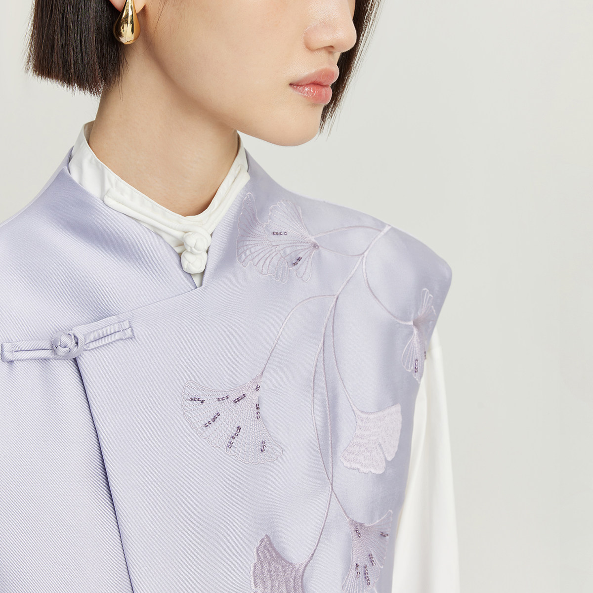 naivee纳薇秋冬国风新中式穿搭时尚刺绣马甲棉盘扣宽松白衬衫女
