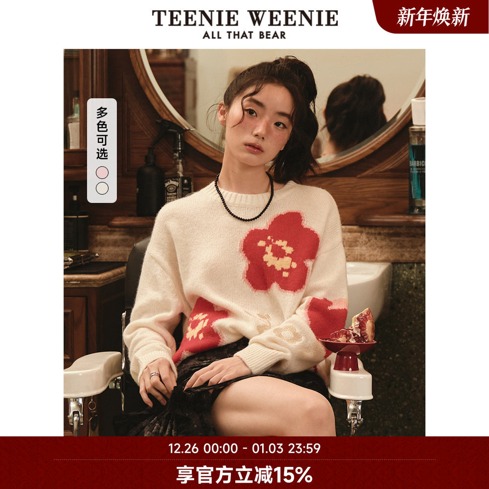 TeenieWeenie小熊奥莱女装新毛衣2025秋季圆领提花甜美毛针织衫