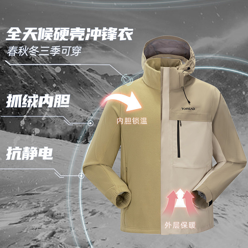 探路者冲锋衣2025年新款三合一男冬季户外运动防风保暖登山服