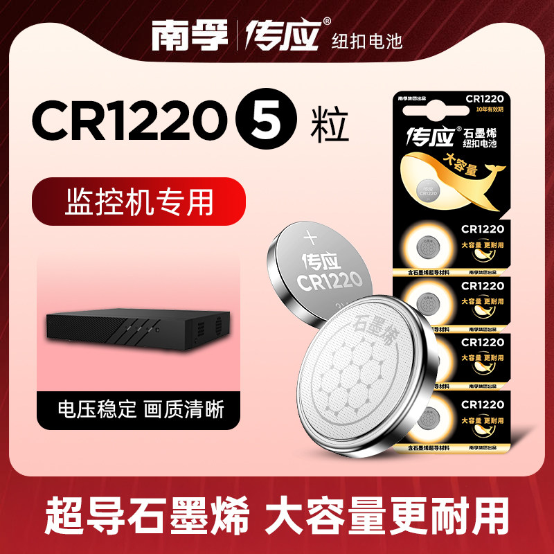 南孚传应CR1220纽扣3V电磁适用于海康威视硬盘录像机主板电池手表