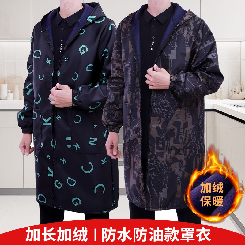 秋冬加绒加厚防水罩衣加长大褂成人男工作服外套围裙防油防风防污